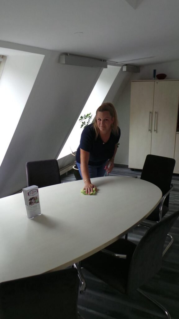 - Gründliche Pflege – Von Schreibtischen über Böden bis hin zu sanitären Anlagen.
